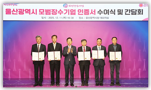 ㈜럭스코는 2025년 12월 11, 울산시청 본관 2층 대회의실에서 열린 울산 모범장수기업 인증서 수여식에서